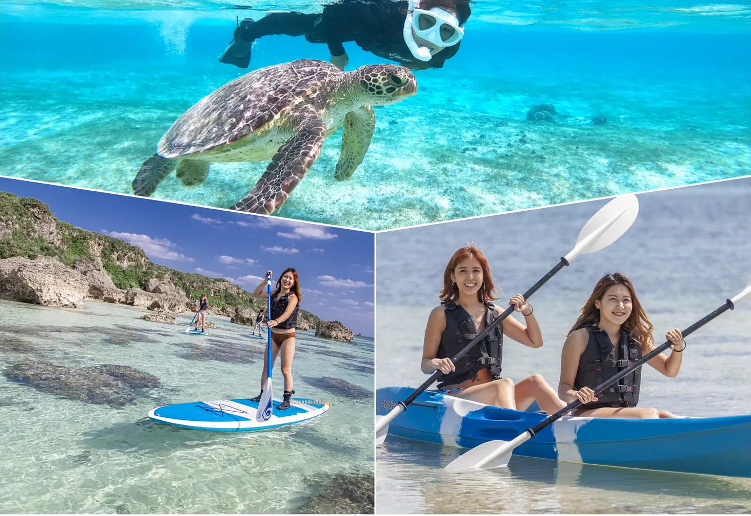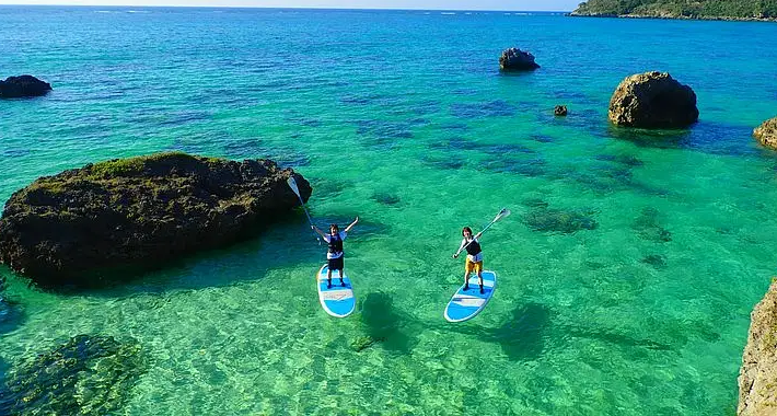 미야코지마의 투명한 바다에서 패들보트 또는 카누, 스노클링을 즐겨보세요.