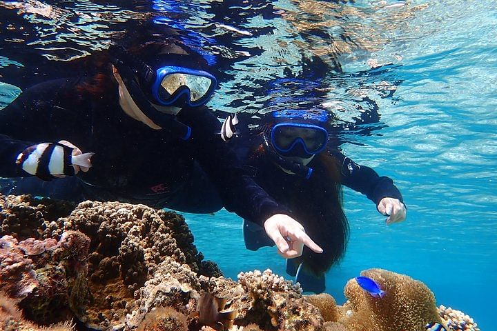 천연 수족관이라고 하는 스노클링 스팟에서 아름다운 산호와 물고기를 볼 수 있습니다.