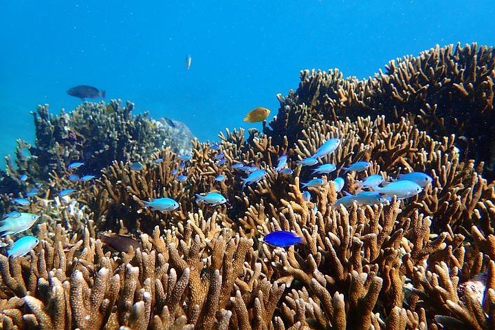 천연 수족관이라고 하는 스노클링 스팟에서 아름다운 산호와 물고기를 볼 수 있습니다.